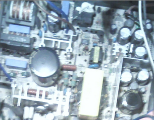 Van benne két trafó. A sorkimenő, és azon kívül egy ferritmagos, mint a PC tápegységekben a kapcsoló üzemű trafó.