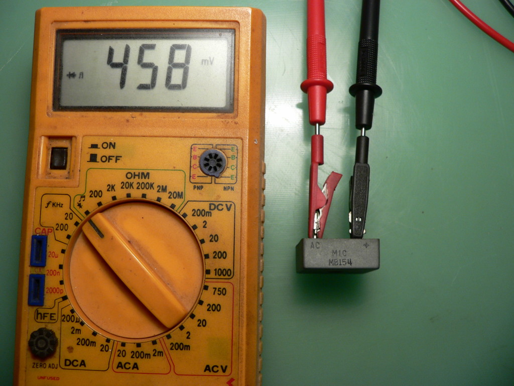 Idézet: Irok hülyeséget.... Természetesen a nyitóirányú feszültségre gondoltam. Ha minden rendben van, akkor még a hálózati fesz értékét kellene mérni,illetve a primer áramfelvétel is fontos lenne. „Mérd meg a diódák nyitóirányú ellenállását....”
