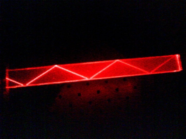 A dolog lényege nem a fény hullámhossza lett volna, hanem a terjedése és visszaverődése a plexiben. Ehhez kellett egy erős fényforrás, hogy le tudjam fotózni... Ami éppen zöld.
