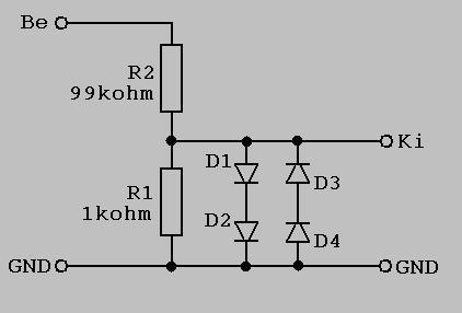 A hangkártya bemenete kb. 1 Veff bír el, torzítás nélkül. Ennek a feszültségnek színusz esetén a csúcstól csúcsig mért feszültsége 2,8 Vcscs. Egy SI dióda nyítófeszültsége nagyjából 0,65 - 0,7 V. Ha kettőt teszünk sorba, az kb. 1,4 V, mivel ellenparalell vannak kötve +/- 1,4 V -nál határolni fognak. Ez megfelel az 1 Veff érték határolásának, ezért a bementet az ennél nagyobb, esetleges tranziens tüskék, nem fogják tönkretenni. Ohm törvényével kiszámolhatod, hogy ha a 100 kohm -os osztódra 12 V -ot kapcsolsz, akkor az osztón 0,12 miliamper fog folyni. Ez az áram olyan kicsi, hogy egész biztos nem terheli azt az áramkört amire párhuzamosan ráteszed. A hozzászólás módosítva: Júl 12, 2013