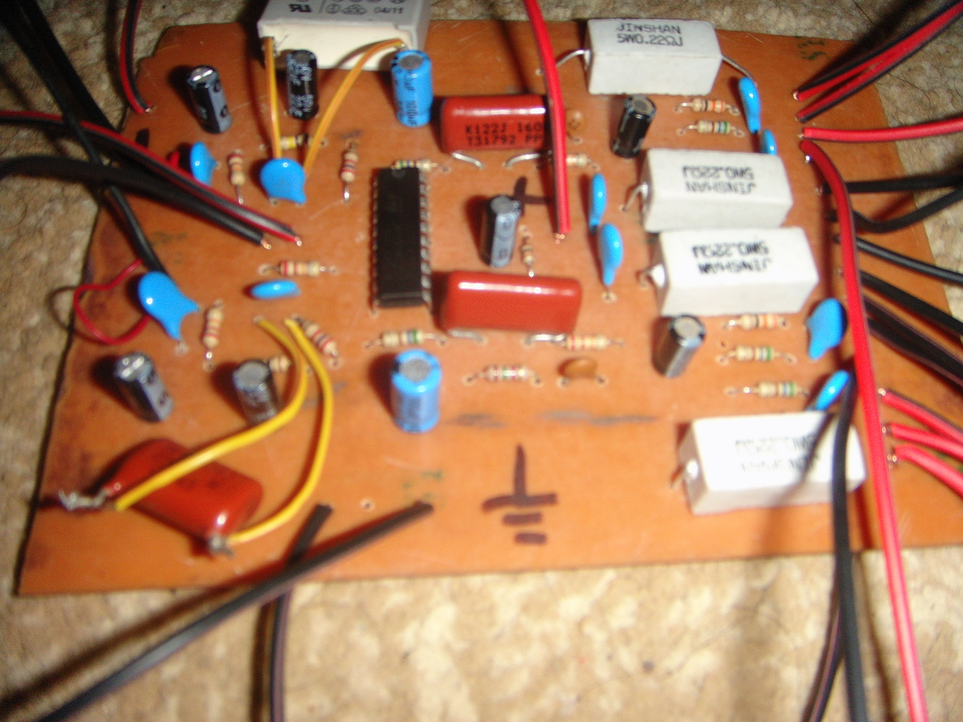"Sajnos" minden alkatrész hibátlan és polaritáshelyesen van beültetve a 3, és a 8-as láb környékén. Az egész panelt lemostam a gyantamaradványoktól is. Kicseréltem az ellenállásokat 0,22 ohm-ra, most a nyugalmi 130 mA. Lehet, hogy ennek az erősítőnek "sajátossága" a magasabb nyugalmi áram? (nem hinném)
