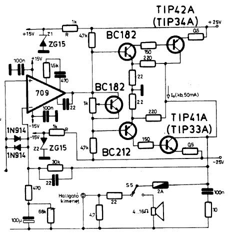 A két áramgenerátor jó ötlet, de R26, R27 összevonható egybe. A szinteltoló instabilitása csökkenthető ha C12-n egy további böszmenagy kondi is van párhuzamosan (pl. 2200uf 6,3V).