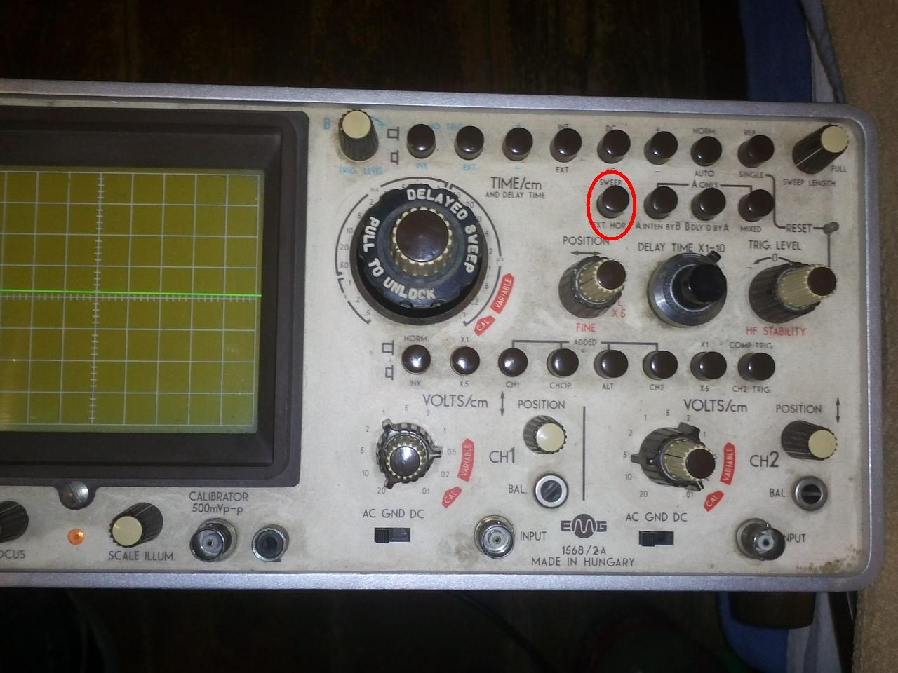 Nemrég vettem ezt az EMG1568/2A szkópot. De nem tudom hol állítsam X-Y üzemmódba. Tudna valaki segíteni?