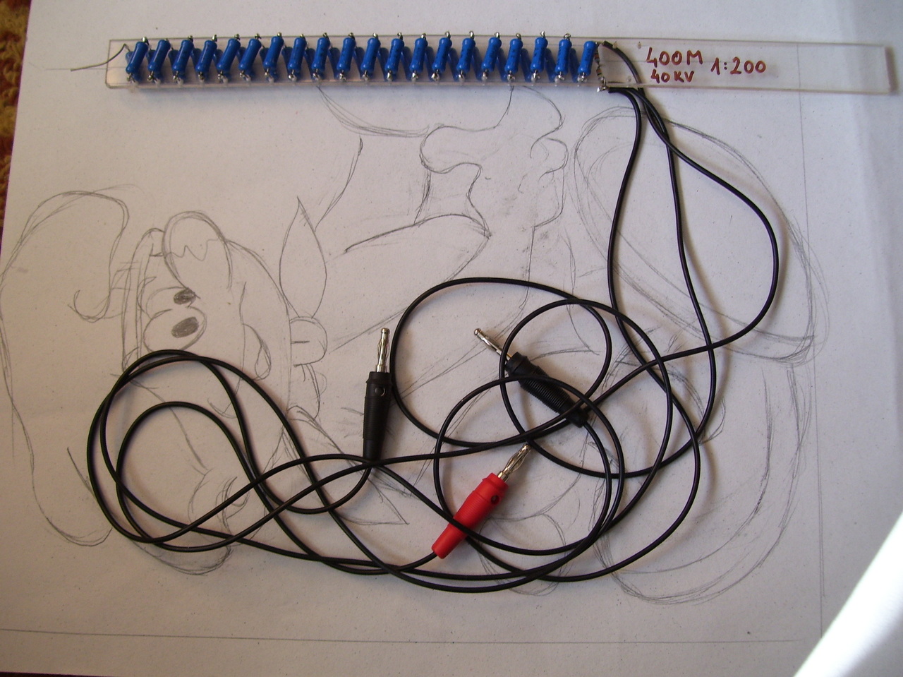 Elhisszük, hogy összeraktad ezt az előtétet. 1óra alatt, a gond vele csak az hogy nagyfeszültség mérésére alkalmatlan, kb.1cm-re vannak a lehelet vékony szigetelésű drótok kivezetései, semmiféle szigetelőt nem használtál, pl. Epoxiragasztó az ellenállások is elég közel kerültek egymáshoz, egy vékony plexin simán áthúz a nagyfesz.impulzus ,