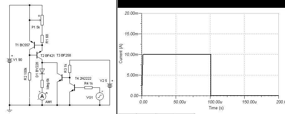 Akkor esetleg lehet egyszerű tranyós áramgenerátort alkalmazni, a kapcsolását meg söntöléssel megoldani. Akkor tud megfelelően gyors lenni. pld. így..