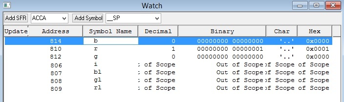 Míg az rl, gl, bl a 807,808,809 címet kapja, addig az r,g,b a 810, 812, 814 címet.