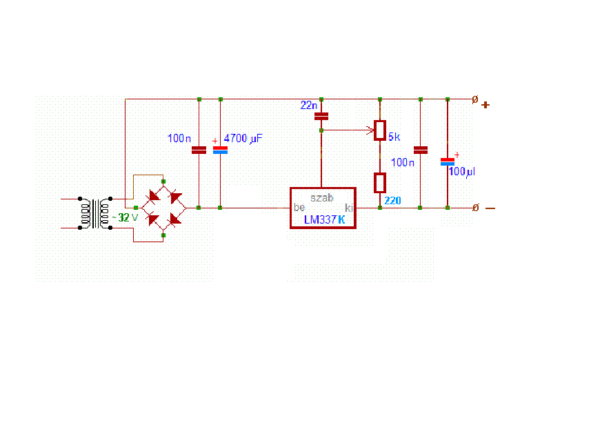 No, végre volt időm foglalkozni a tápegységemmel. A baj pedig nem volt más, mint hogy sok volt neki a puffer kondenzátor. 2db 2200µF volt a 317-es előtt. Amint kiforrasztottam az egyiket a kimeneti feszültség ugrálása megszűnt. Most már terheletlenül is egyenletes a kimeneti feszültség.