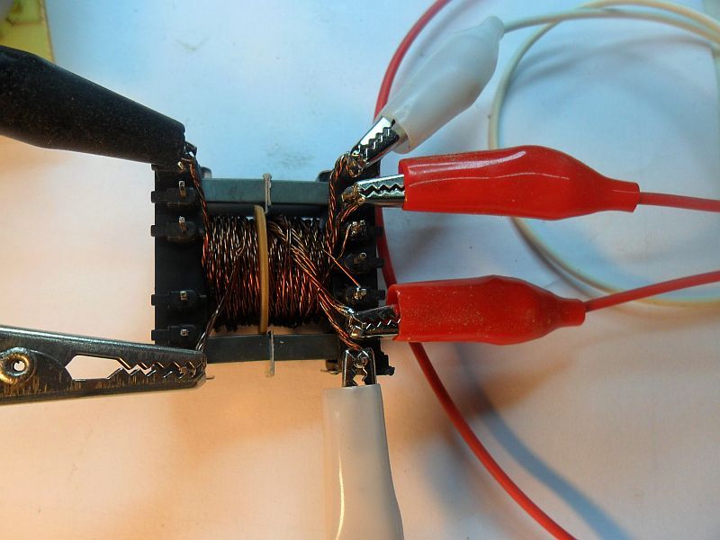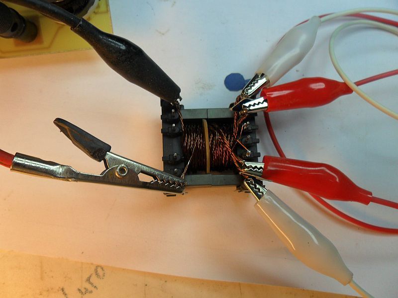 A mostani értékek: 47,74µH szórt induktívitás 397µH Mágnesező induktívitás légrés 0,09mm Ez most maradhat vagy újra szedjem szét az 50µH névleges szórt induktívitáshoz hiányzó 2.3µH kedvéért vagy kapcsoljak sorba a trafóval egy ekkora értékű induktívitást? Ehhez a tekercseléshez bizony hiányzik még egy kéz, vagy előny az ékszerész szakma, ez nagyon nehéz művelet.
