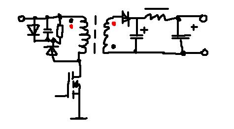 A szilva által linkelt rajz jó. A pimeren az áramirány a ponttal jelölt tekercskezdettől az IGBT felé mutat tehát a kezdet a pozitivabb. Az azonos menetirányú szekunder "pontos" kezdete is pozitivabb lesz az IGBT bekapcsolása alatt, tehát a szekunder oldali dióda zárva marad. Mihelyt a primer áram megszakad mindkét tekercsen forditott polaritású fesz indukálódik-nyit a szekunder oldali dióda....