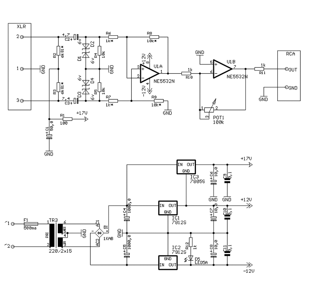 Megépítettem, nagyon jó,szimmetrikus mikrofonhoz tökéletes, alig-alig van csak zaj. Az R9, R14 ellenállást és a VR1 potmétert nyugodtan ki lehet hagyni, hogy csak a C1 kondenzátor maradjon.