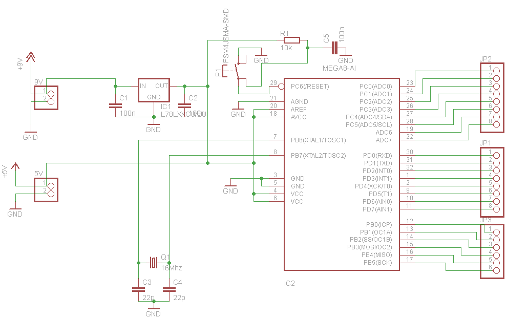 Szeretnék egy univerzálisan használható SMD atmega8 panelt... Megnézné nekem valaki, hogy jól alkottam-e a kapcsolási rajzot? Köszi!