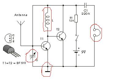 Sziasztok nagyon szeretnék egy fm rádió vevőt késziteni ebben kérnem segitségeteket.Amit beraktam képet azon kijelöltem piros karikába amiknek nem tudom a nevét légyszives segitsen valaki ,jah és hova megy rá a hangszóró?