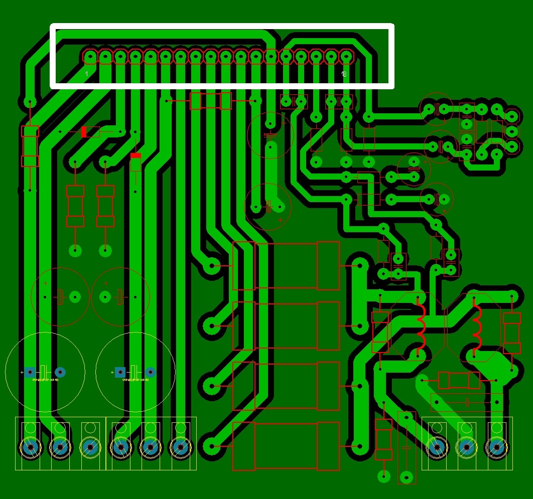 Sziasztok! Kicsit sok a kábel már belezavarodtam. Szerintem rosszúl helyeztem az ict és az a baj. Kezdem az egészet az elejéről. Bontottam egy kicsi tolópotis panelt, amin 5 darab sztereo poti található. A panelről lejön 2 darab 7 eres kábel. Maga a potiknak külön van a gndjük, mármint a bal és a jobb oldal. Balról jobb oldal felé 10 darab potméter középső leágazása, míg a többi 4 azok párosával vannak kötve, de külön bal és jobb csatornára mint ahogyan említettem már. Igaz az eredeti kapcsolási rajz 10band-os, de én csak 2x5 bandot használnék.(minden második, a rajz alapján) Maga a terv nincs befejzve, mert eleinte elég szépen sikerült, de a végére egyre több átkötés jött a képbe, mondjuk nem zavar, de valamiert szerintem nem ugy sikerült ahogy kellet volna. A 2 jumpersor között 3 cm távolság van(mint a 2 darab 7 eres kábel között). Szeretnék valami tippeket kérni, hogy hogy is pakoljam az icket, nem bánom ha sok az átkötés, van elég ellenállásláb.