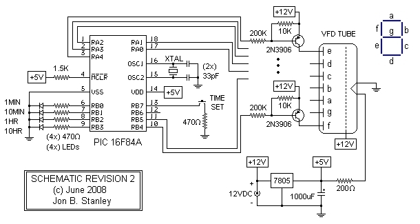 Szerintem az elemet a VFD fűtése fogja felkajálni. Én minden estre azt időre kapcsolnám. A 12V-ból 12V-ot nem lehet készíteni, de kérdés egyáltalán szükséges-e a VFD-nek a stabilizálás. Mert szerintem nem. Attól, hogy az elem egyenáram,még van belsőellenállása. Ha a tápot a kijelző rángatja, rángatózni fog. A stabi gerjedése (két 1000nF-al, meg nem ezen múlik, de tudtommal közvetlen a PIC lábára is "kötelező" tenni, ha nem akarsz bajokat magadnak.. De én csak belebeszélek, tégy belátásod szerint. üdv!