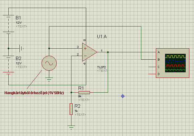 Bővebben: Link Ebből azt is láthatod, milyen sokoldalúan használhatod, de még megtalálhatod az általad szimulált áramkörhöz is a "sallangokat", sőt "AC amplifier" néven találsz egytápos kivitelt is, amit tápolni kicsit egyszerűbb. Azon a rajzon mindkét bemenet használva van, de használhatod az egyiket is, a másikat lógva hagyod, vagy bele sem építed. Az ellenállások értékei nemcsak az erősítést határozzák meg, hanem pl. a bemeneti ellenállást is. Ha túl kicsire választod, a bemeneti ellenállás is túl kicsi lesz, terhelni fogja a hangkártya kimenetét. No nem olyan nagyon, de akkor kisebb értékű csatoló kondenzátorokat használhatsz.