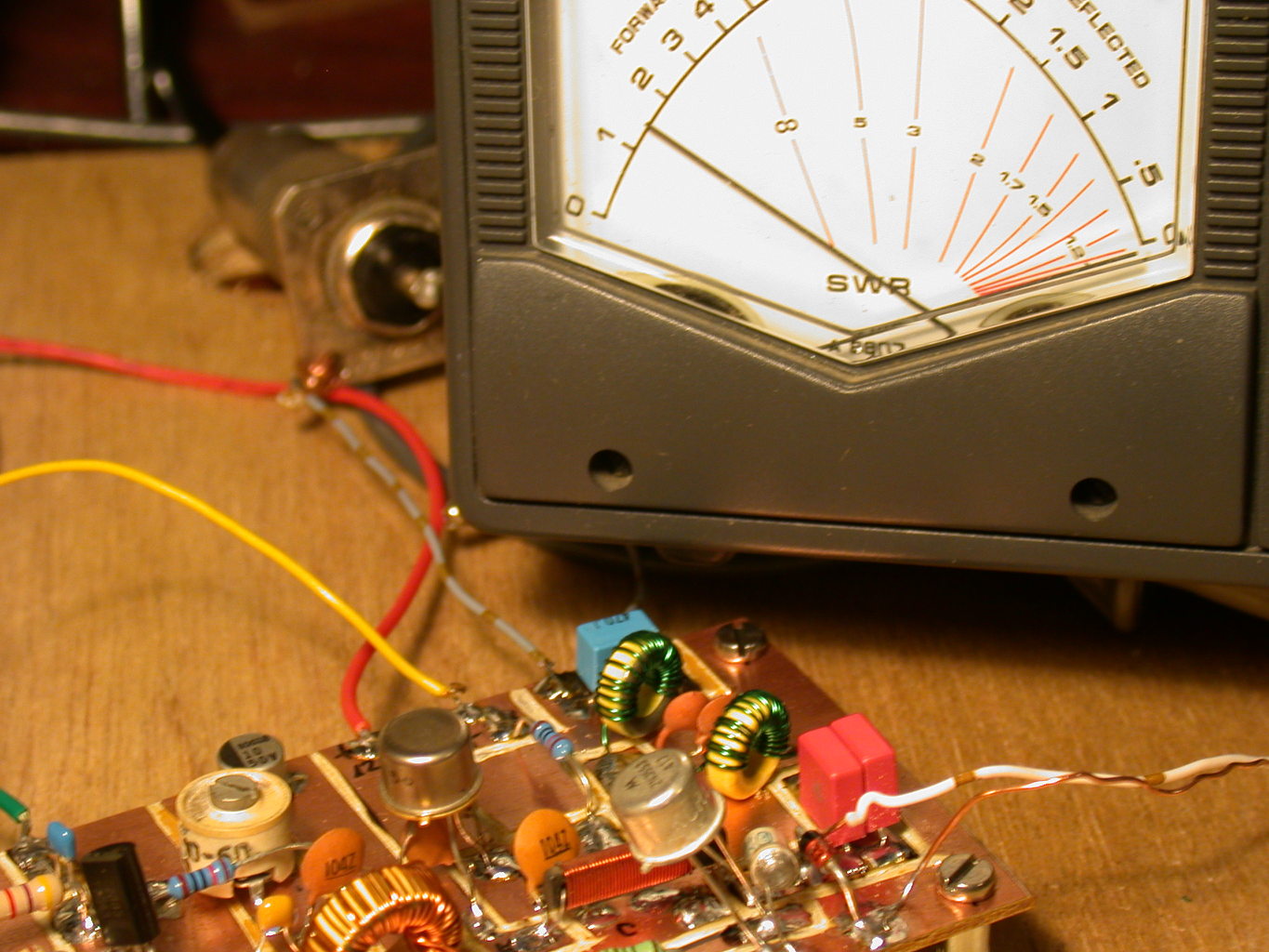 Egy két észrevétel: BD139 tranzisztorral negyed annyit tud mint a 2N3553-al, a Meghajtó tranzisztor is válogatással legyen alkalmazva! Ennek kollektor körében lévő vasmag nálam először Kőporc N100-as volt de aztán egy T50-6 Amidon pormaggal másfélszer több lett a teljesítmény és igen meredeken lehet hangolni a vele párhuzamosan kötött 47pF és a 10-60pF trimmerrel. A kimenet i sávszűrőt először T37-2 piros gyűrűkkel készítettem (mert pont volt kettő megtekerve) de túl alacsonyan vágott és 6MHz körül ment majd az L2-L3-at kicseréltem az előírt T37-6 sárga gyűrűkre 19 menettel és már helyre is állt a rendszer. Ezután újra kellett hangolni a meghajtó kollektor köri rezgőkörét .