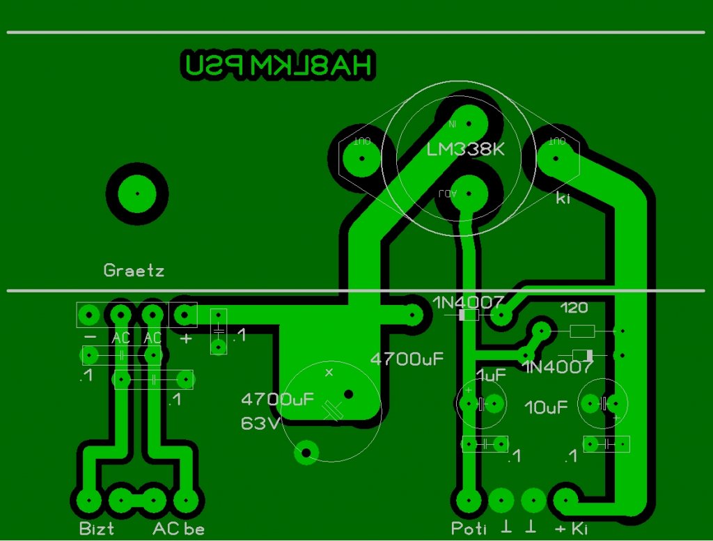 További kérdés: mennyi feszültséget mérsz a stabi IC bemenetén, vagy az nincs-e fordítva beforrasztva? Az áteresztő tranzisztorok Emitter összekötő és a kimenetre menő vezető is olyan vastag legyen mint a Kollektorokra menő! Ha nem megoldható akkor tapaszd be ónnal!