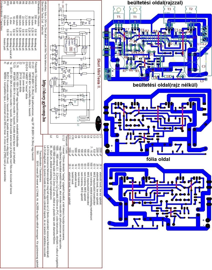 Aztán azon gondolkodj el, hogy milyen az elektronikai-elektrotechnikai tudásod és tapasztalatod. A témával ismerkedőknek a kis Skori-féle tekercseket javasoljuk, hogy ne nagyfeszültségű táplálást csináljanak elsőre. Mert lehet, hogy a szekunderen a szikra nem csap agyon, de a primer oldalon ott a birkózógép a hálózati táplálásúaknál és az öl!