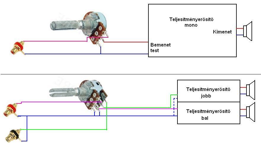 Az a problémám, hogy egy tda7294 erősítőre szeretnék dupla bemenetet kötni potikkal, hogy a két bemenet, külön szabályozható legyen, de nem tudom hogyan kell. Segítene valaki. Néztem a potik bekötését, de ha úgy kötöm be a két potit ahogy azokat kell, akkor ha az egyiket lehalkítom, akkor a másik sem megy hiába húzom fel maxra. Mellékeltem képet, hogyan köttem be, de így ha lehúzom mindkét potit akkor kicsit zúg a végfok és ha fordítva kötom be tehát ha a bemenet a poti szélső lábára megy és a középsőről megy a végfokra akkor a fent említett probléma lépik fel!