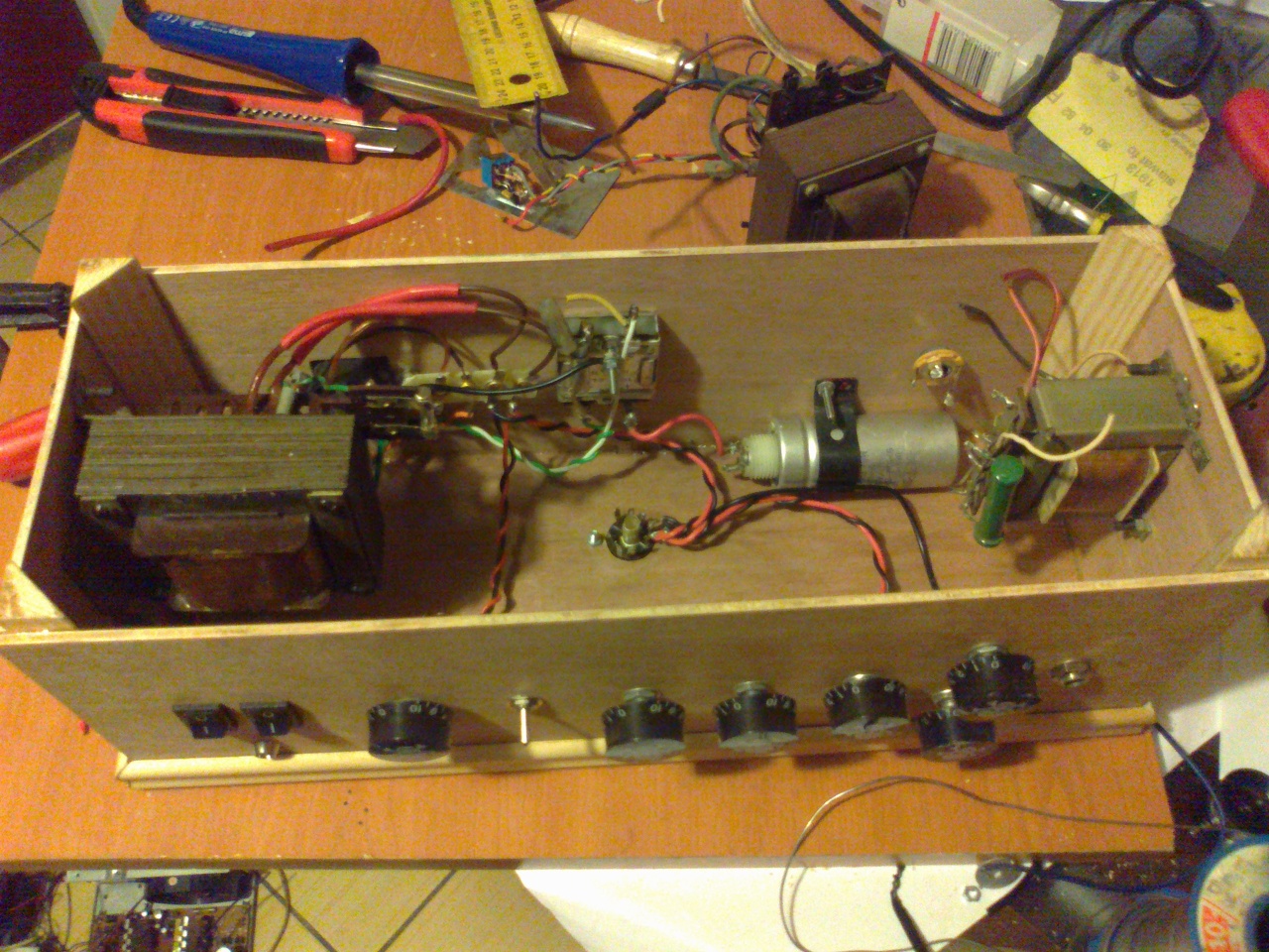 Készül a mű. Plexi előfok, ECL 86-al. Minden észrevételt, kritikát szívesen fogadok. A következőt már alacsonyabb dobozba építem, mivel nincs hosszú, hőálló ujjam. De ez már így marad.