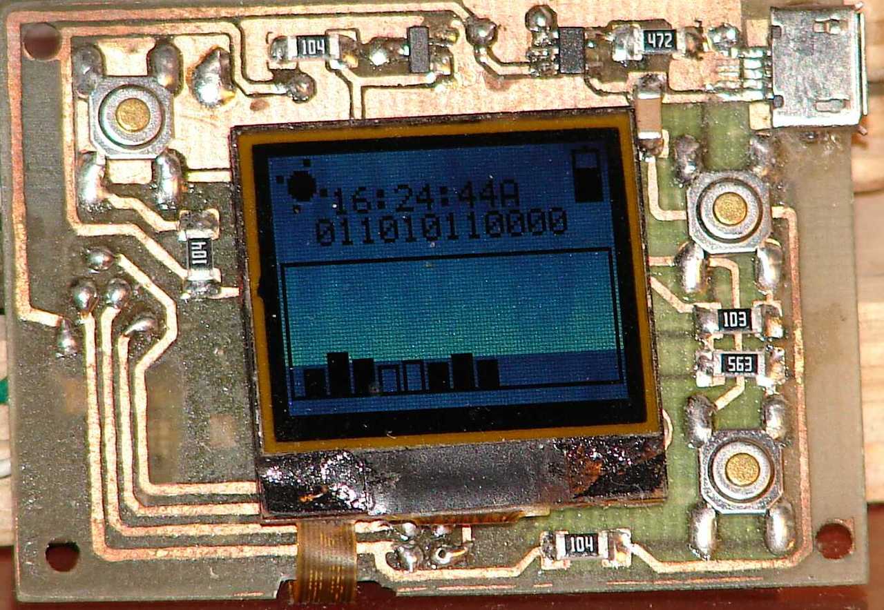 Még tavasszal készítettem egy "okos óra" prototípust, amiről néhány képet szeretnék megosztani. Ebben a formában nem épül tovább, csak kipróbáltam pár ötletet. Alapja egy ATMEGA328, egy Quectel L50 GPS és egy Nokia 2760 LCD. Az LCD monokróm 96x68pixel felbontású. Egy 400mAh kapacitású Li Akku látja el energiával, a nyákon van akku töltő is és egy mikro USB-n keresztül lehet tölteni. Amennyiben nem megy a GPS, akkor kb. 30-40 napot bír az akku töltés nélkül, (ha nem nyomkodjuk a gombokat, mert az LCD háttérvilágítása is fogyaszt ekkor). Abban az esetben, ha folyamatosan megy a GPS, akkor kb. 8 óra az üzemidő. Többféle óratípus közül lehet választani : analóg, digitális, bináris szöveges, római számos. A GPS-t bekapcsolva tartva sebességet, magasságot, hosszúsági és szélességi fokot tud kijelezni.