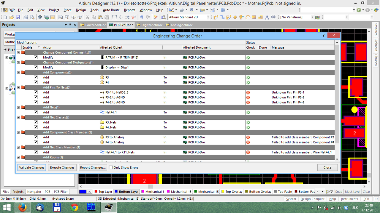 Szinte már szégyenlem, hogy ennyit kérdezek. Lemaradt még egy szűrő kondi és az ME táplábai fordítva voltak bekötve.Ezt utólag módosítottam, de import changesnél a csatolt képen látható probléma jelent meg. Ez mindenegyes módosításnál jelentkezik? Mit csináljak ezzel? Tudom, hogy összekellene kötni csak nemtudom mit mivel.