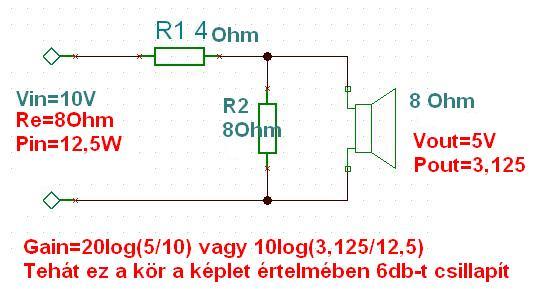 Az L pad ellenállása 3,9 ohm és 7,9 ohm, arról is itt a rajz.
