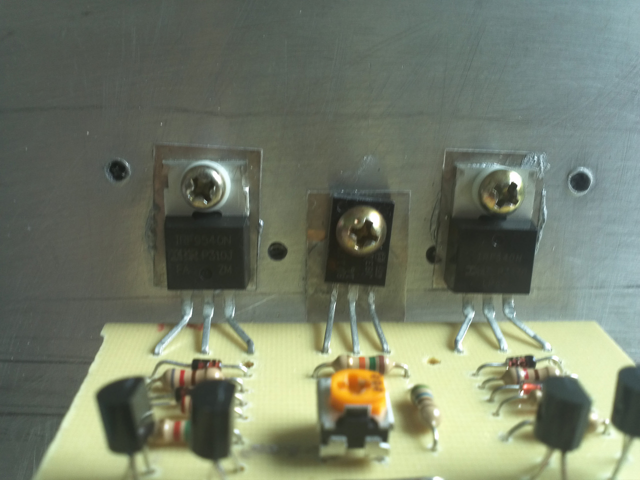 A mostani választás egy VF2-Conductor, ehhez nem kell módosítanom a tápegységet. Mielőtt rátennék akár egy ici-pici tápot is, szeretném, ha ránéznétek. A baloldali fet IRF9540 a jobb IRF540