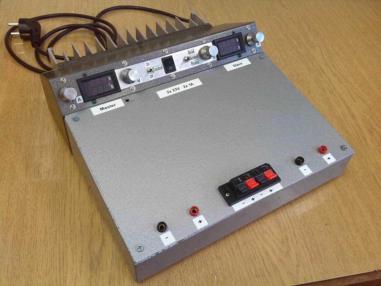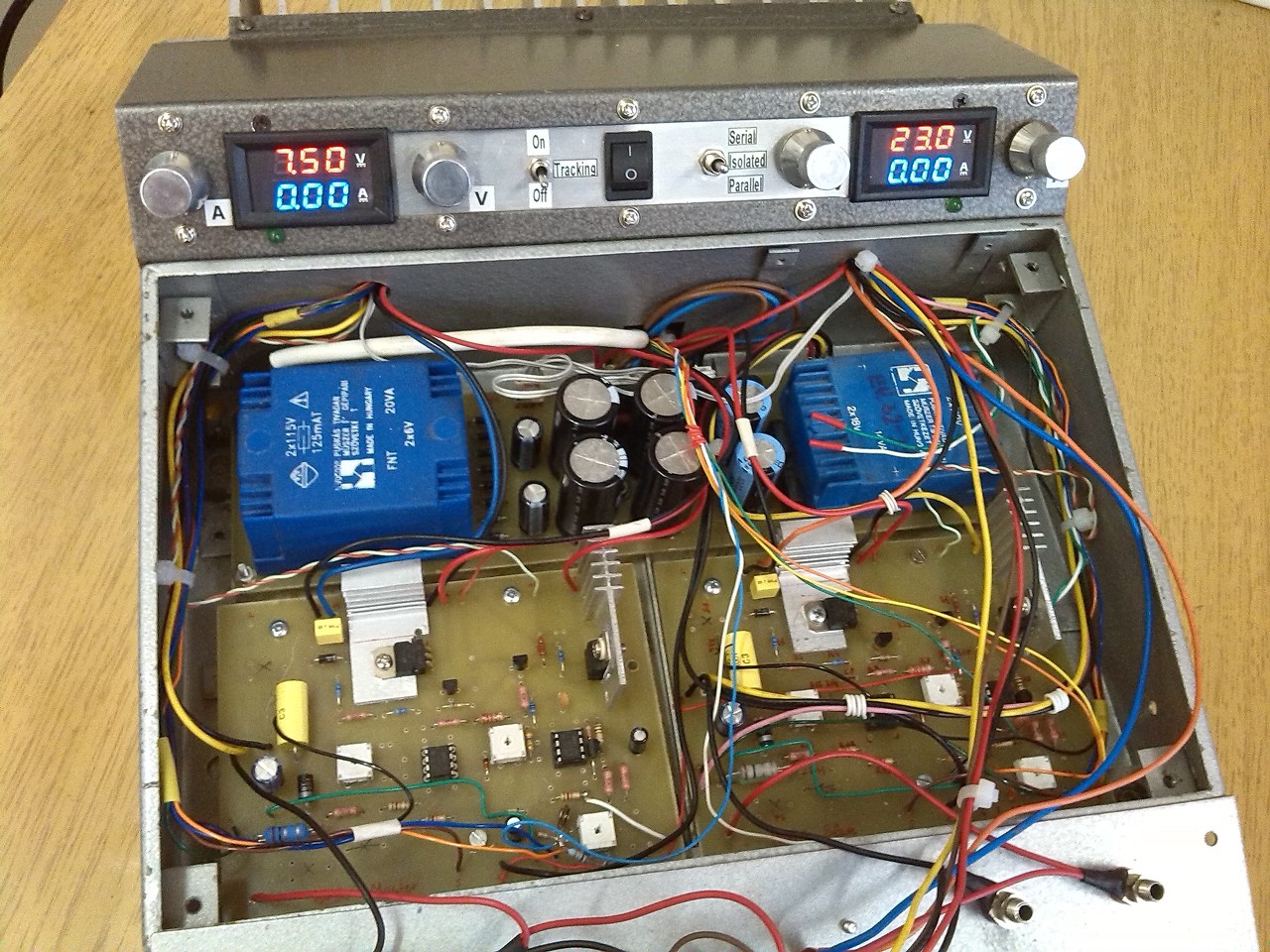 Elkészült stabilizált labortápom a 2002 RTÉK alapján, picit újragondolva. A kapcsolással semmi gond, elsőre pöccen. Viszont a követő mód a közölt formában eleve nem működhet. Ezt módosítva, illetve soros - párhuzamos kapcsolási lehetősséggel kiegészítve került bedobozolásra. A teljesítmény trafó (is) adott volt, és mive volt még benne kraft, így lett 20V helyett 23 a vége. Szeretném leszögezni, ez is egy fiókból épített cucc, de nálam ez szinte mindig így van. Találtam 4db 10fordulatos heli potit, hát akkor építek köré egy tápegységet csupa lomiból ! Na jó, az alapműszerek kínából repültek... A hozzászólás módosítva: Ápr 22, 2014