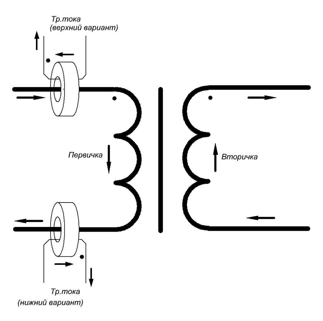 Azért tesszük közvetlen a trafóhoz az áramváltót, mert így nem kell külön helyet kialakítani az IGBT modulon, egyébként oda is tehetnéd, ahogy a rajzon van. Ugyan az az ág!A lényeg, hogy nem a kezdő ponttal jelölt ágban legyen! Egyébként mire tekerted meg milyen gyűrűre?