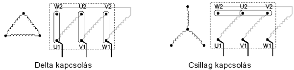 Gyári tekercselésnél (és korrekt újratekerésnél) kivezetik mind a hat tekercsvéget.