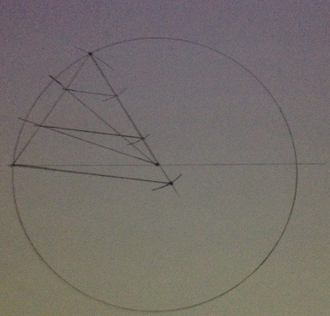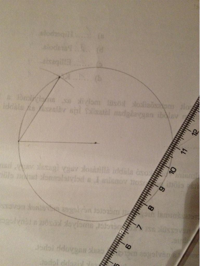 Áááá. A válaszok tökéletesek. Igazándiból a kérdést kellene továbbvinnem, Én is így oldottam meg a kérdést: hogyan lehet ugyanígy 10 fokos szöget szerkeszteni (majd 20, 40, 50, 80-ast) szögmérő használata nélkül. Természetesen a ceruza megengedett .