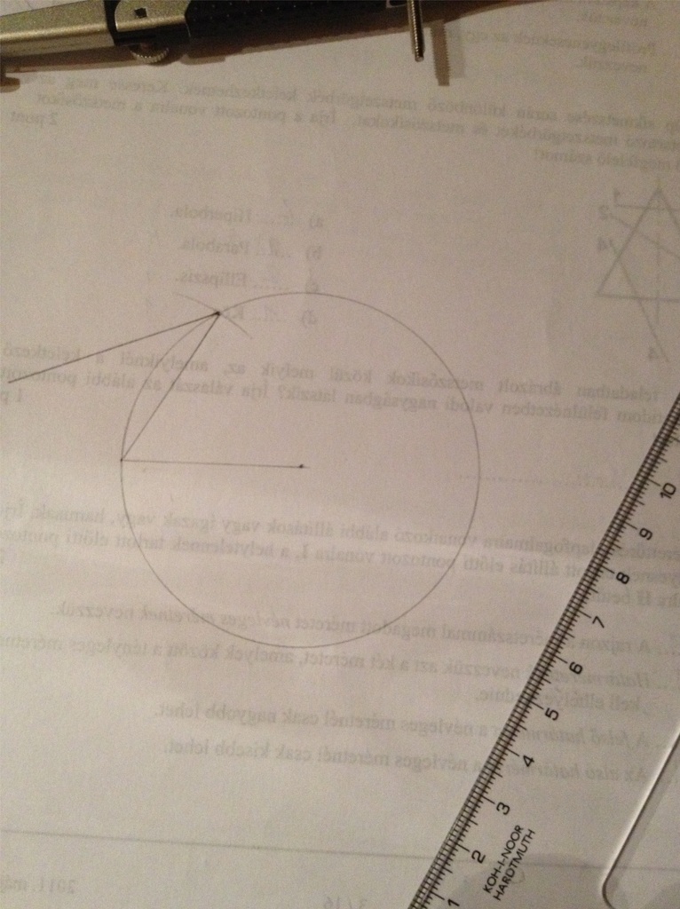 Sikerült . Kb 15 perc volt... Ebből 10 ig körzőt 2 ig vonalzót kerestem