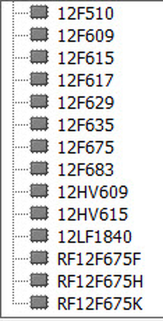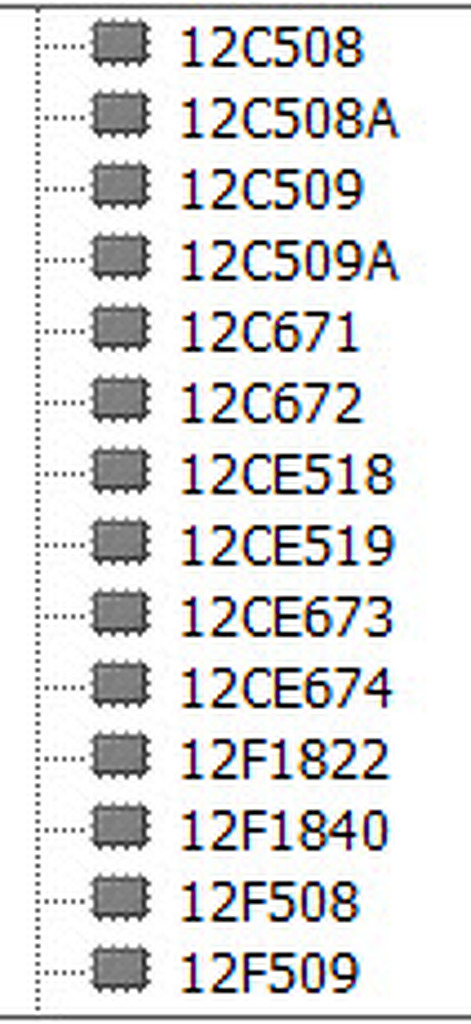 A lista tartalmazza az 12F508-at is a PDF-ben, de sajnos a program nem támogatja, azért kérdeztem, mi az amit esetleg valaki már programozott, illetve engedi is a program. 12F szériából, pár soros program lenne 2 be illetve 2 kimenettel ezért nem akarok 16F szériát.