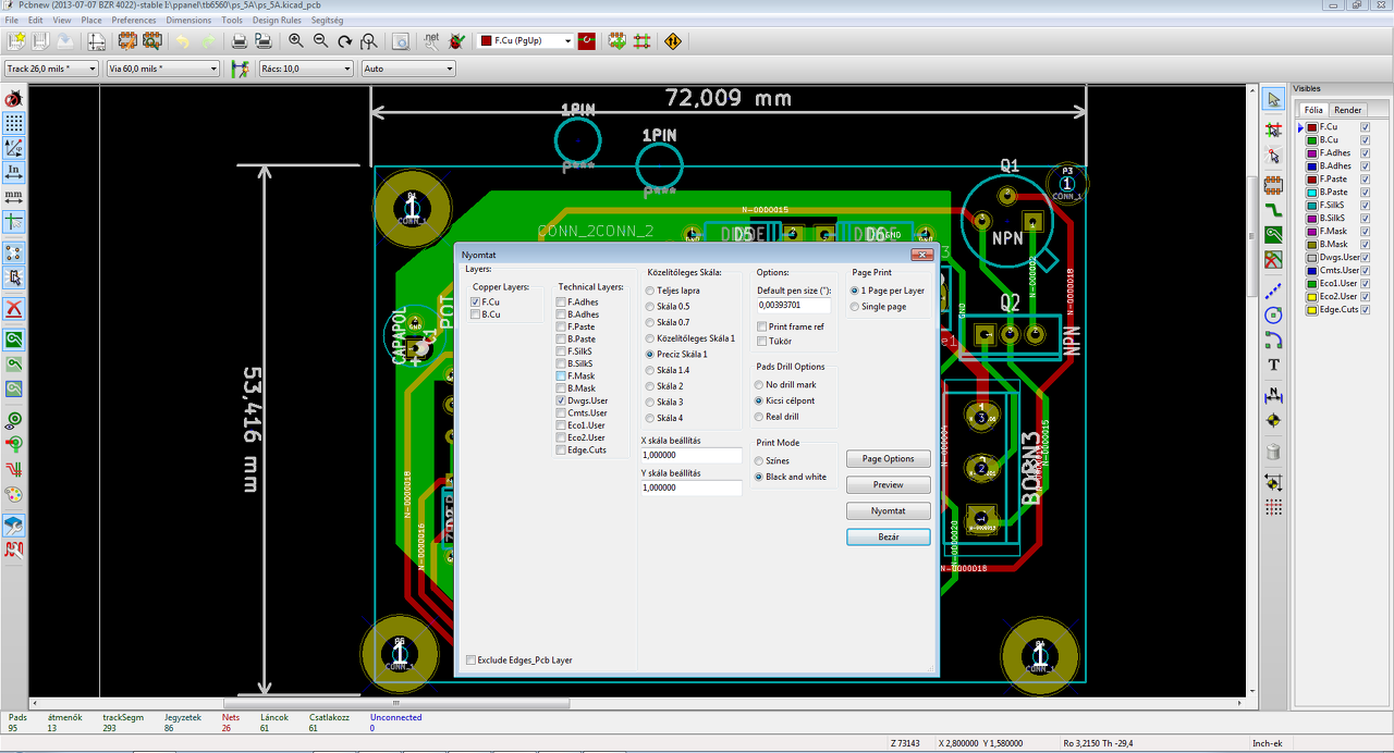 "Tervezésnél A3 a pappirméret. Probáltam már pdf-be is, végeredmény ugyan az. Eagle-ba tervezet nyák pontosan nyomtatodik."