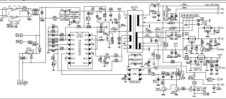 Mert ha nincs , akkor nehéz lesz. Mindenek előtt pormentessé kell tenni a készülék belsejét .Alaplaptól kezdve mindent porszívózz ki egy ecset segítségével.Azután kell egy műszer , és a sárga szaggatott vonallal bejelölt dolgokat ki kell mérni.Egy biztosítékot látok , hogy az több mint valószínű , hogy elszált. De akkor annak már oka lesz.Szóval ??? Lesz hozzá némi tudás ?