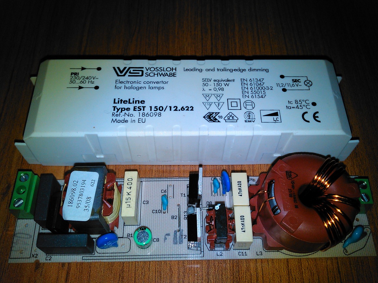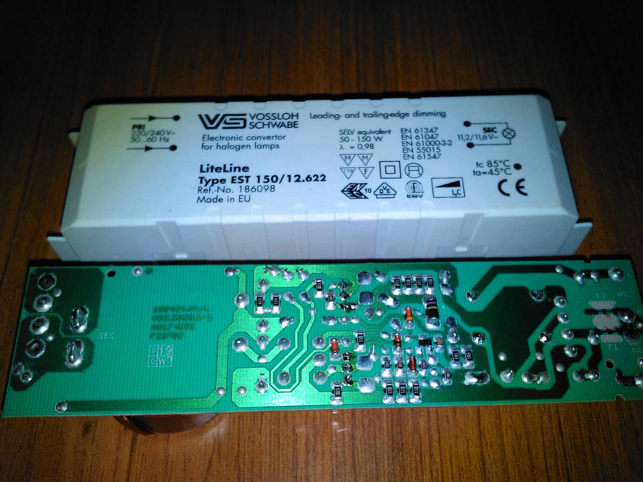 Mar jo ideje tarolok itthon nehany elektronikus elotetet. Fenycsovekhez es sima 12V~ szekunderest. Gondoltam majd megjavitom oket,de mar az oruletbe kergetnek. A mellekelt Schwabe elotetnel semmifele lathato egesi nyom nem volt.Ujszeru kinezetu.Eredetileg BUL58D NPN tranzisztorok voltak benne kimenve.Ezeket potoltam MJE13007-el. Diodakat kimertem mindegyik rendben van.Tekercsek kimerve nincs szakadas. SMD diodak kimerve mind jo.Graetz merve,jo. Segitseget kernek toletek,hogy megis mi lehet a bunos!? 12V 50W halogen izzoval teszteltem es semmi. Terheltem 100W-al es semmi. Az uj tranzisztorokat mar kiszedtem meresre,de azok jok maradtak es visszakerultek.