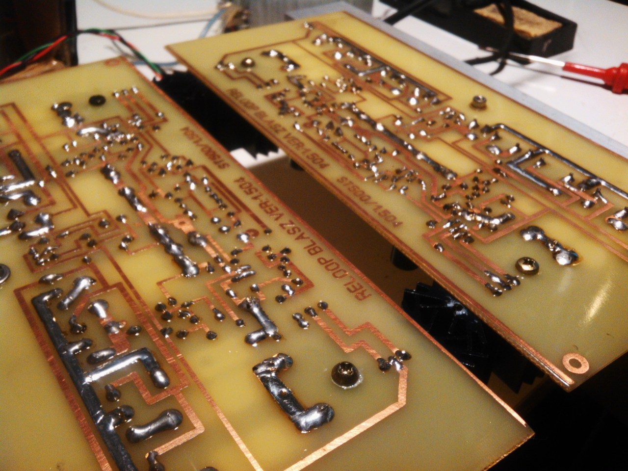 Szia! Őszintén nem hajtok annyira az esztétikára. Amit mondtál tranyokat hogy nem ártana nagyobbat, azokat ezután veszem meg. Bc556 be van ültetve. Ellenállásokkal az a helyzet, hogy én olyan értéküeket tettem a panelbe, mint a 80V verzioban ahogyan van. Az erősáramu résznél direkt cíneztem fel, biztos ami biztos.(Hozzászólás írása közben megnéztem a tranyokat, sajnos nincs). Eddig nállam a panelről még nem jött fel réz, csak haveromnak sikerült valahogy az egyik meghajtóná felszedni. Annyi hogy 68 ohm helyett 100 került bele, a táp es a gnd közti 47 ohm helyett pedig 10.
