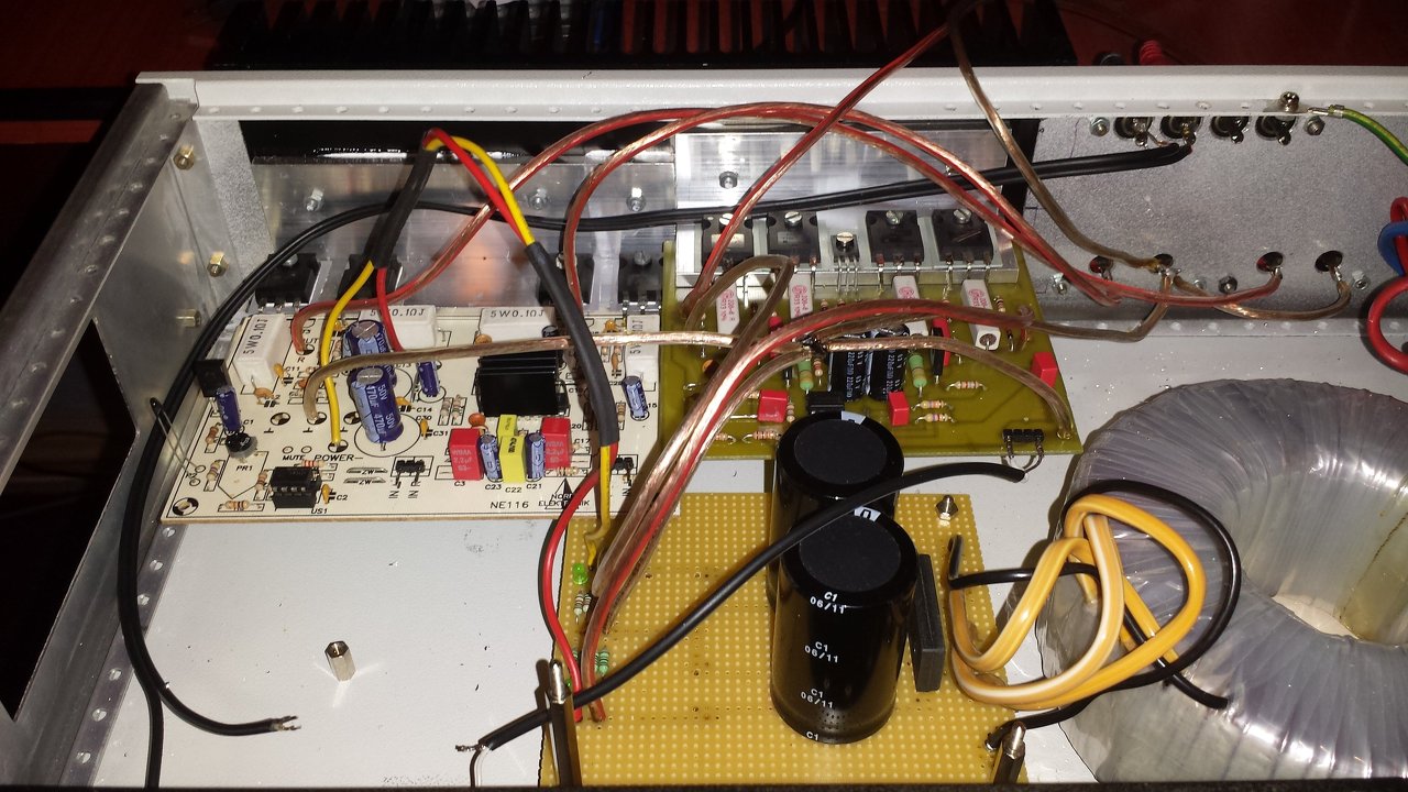 Elolvastam a hozzászólásokat, de a fenti hozzászólásban leírt problémámat csak nem tudom megoldani. Az a probléma, hogy ha mindkét végfok ugyanazt a jelet kapja, pl. ha a sztereo végfok bal oldali bemenetét rákötöm a 270W-os bemenetére, akkor minden búg. Ha külön-külön adok nekik jelet, akkor minden OK. Csináltam képeket is az épülő munkáról.