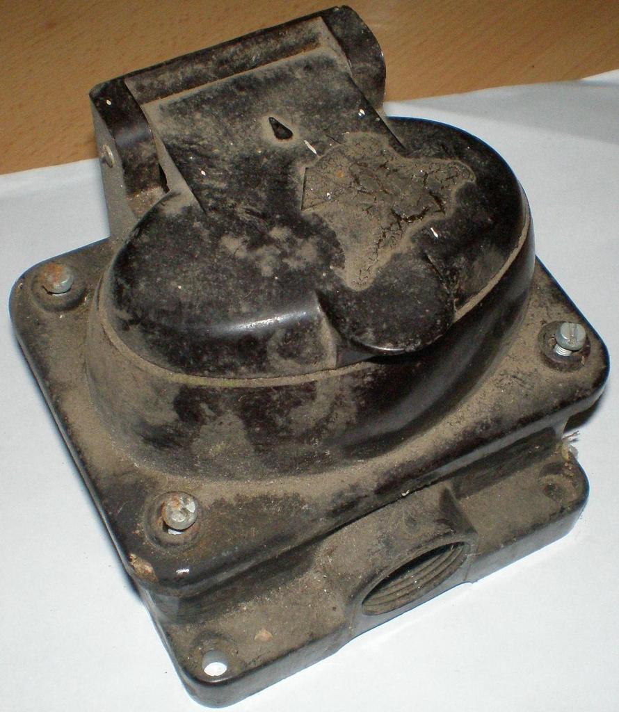Sziasztok, megint én vagyok itt egy furcsa csatlakozóval. Korban szerintem megegyezik az előzővel. Maga a csatlakozó egy ipari 380 volt 16 amperes darab, brutális felépítéssel. 1,5 mm-es réz lemezből vannak hajtogatva a kontaktok, vastag bakelit doboz, és szinte törhetetlen vastagságú porcelán szerelőlap. Ez mikori lehet, nem tudja valami?