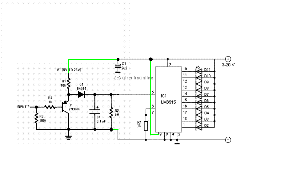 Ez az csúcsegyenirányító áramkör szerintem jó lesz a 3914 elé. Az erősítését a trimmerrel tudod beállítani.