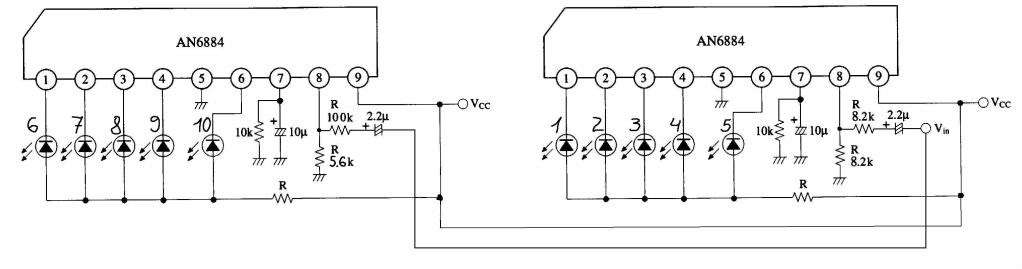 10 ledig nagyon szépen megy,de az utolsó 5 led csak nagyobb bemeneti jelnél kezd villogni.