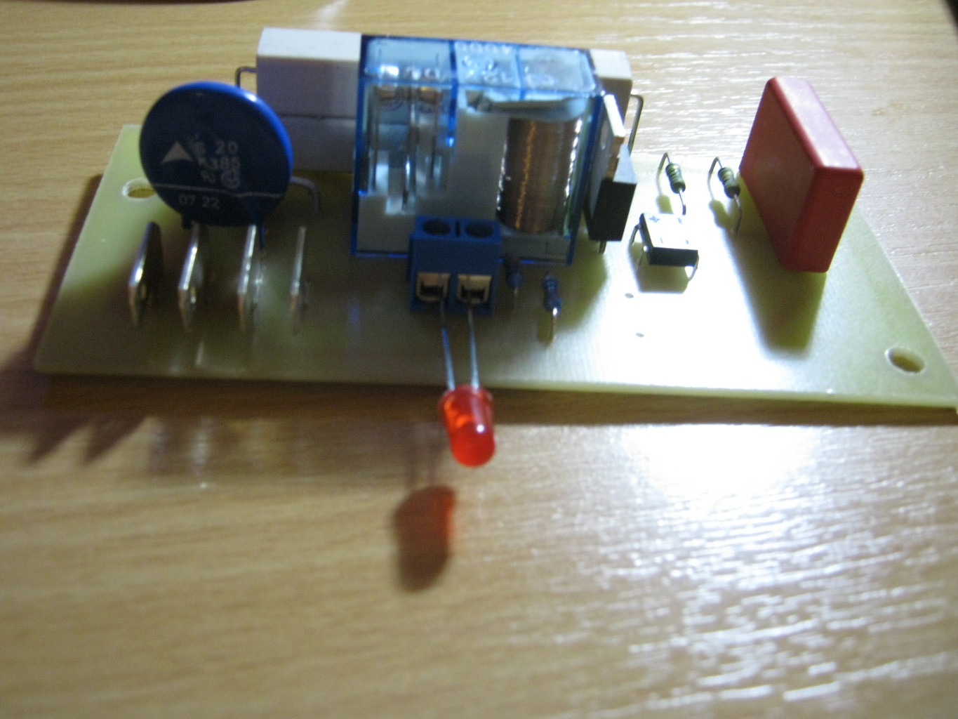 Nálunk annó volt, aki a szakmai vizsga gyakorlati részén az egyoldalas NYÁK forrasztási oldalára ültette be az alkatrészeket. Elég rusztikusan festett a löt lakkos feliratozott panel efféle megvalósításban |