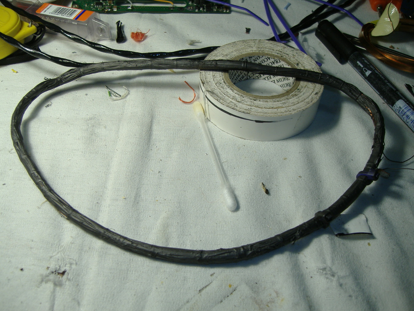 A képeken azt látni, hogy a tekercset szigszalaggal bugyolálják. Ehelyett inkább lakkal kellene impregnálni.
