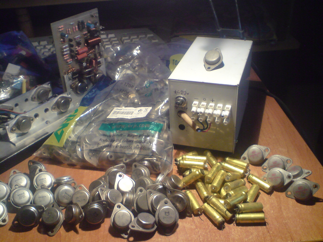 Szia, ezek nyáron kerültek elő, egy ócska dobozból, egy 2*20V-os ruszki trafóról mentek, annyit tettem velük hogy kicseréltem a szigetelést, meg bétára válogattam, átlag 60. Tényleg 0,9 ohm, mert nem tudtam egyenként kimérni, úgyhogy kiszedtem az előbb és sorba kötve mérek rajtuk 1,8 ohm-ot.