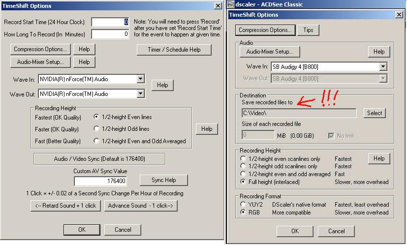 a te problémádra a megoldás a virtualdub program. igaz azt elég alaposan be kell állítgatni, de sokkal jobb, mint a dscalaer. van olyan verziója, amit átírtak, hogy időzíteni lehessen a felvételt, de ha minden igaz, akkor a virtualdub elindítható parancssori kapcsolókkal is, így viszont a windows ütemezőt használva is lehet időzíteni (ez utóbbit még nem próbáltam ki)