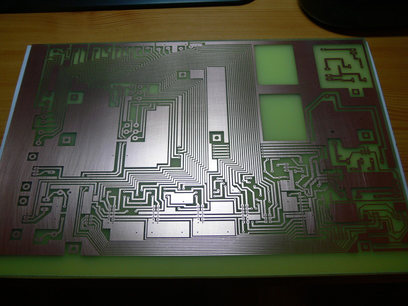 Ha igzán szépet szeretnél, legközelebb - ahogy az előttem szólók is írták - valamivel vastagabb vezetősávokat használj, és forrasztás után a forrasztott oldalt mosd le denaturált szesszel, az leszedi a szétfrecsegett-szétfolyt gyanta-maradványokat. Akkor lesz csak igazán szép a kész panel! Amúgy a kapcsolási rajzot valóban szívesen vennénk, sőt, némi többlet-infó a vezérlés mikéntjéről szintén sokakat érdekelne, szerintem.