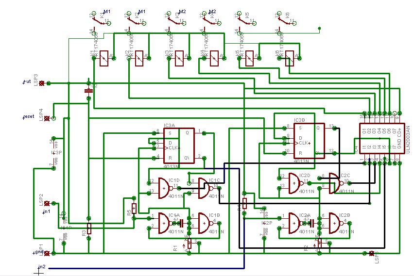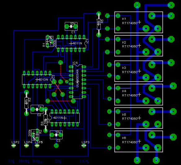 Föltettem a kapcsi rajzot és a javított panelt a beültetési rajzon rajtavannak az alkatrész értékek.A müködéséröl röviden csak annyit a telefon 2 monostabilt indít és a 4013 as dönti el hogy nyisson vagy zárjon a monostabilok beállításátol függően 15-60 s-ra húznak meg a relék a két bemenet diódával közösül a telefonra viszont kézi kapcsolóval külön is indíthatok(a telefont csörgetni kell mert az nem kerül pénzbe