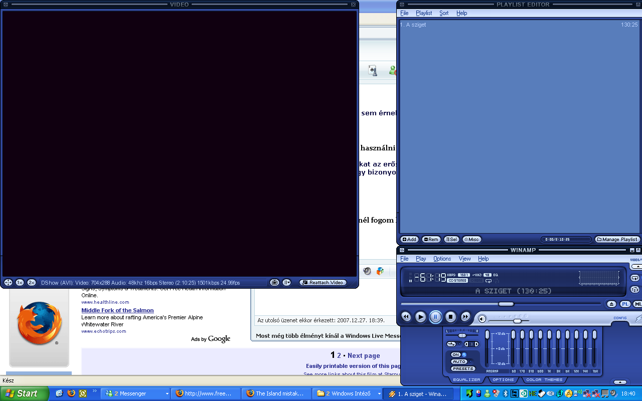 Sikerült egy igen érdekes screenshotot készítenem. Első ránézésre semmi különös nincs rajta. Viszont indítsatok egy filmet, bármilyen lejátszóban, és vigyétek a film fölé az üres winampos lejátszófelületet. Átlátszik rajta a film! Szerintetek hogyan lehet ez? Nem én csináltam vele bármilyen trükköt, egyszerűen egy filmről akartam egy képet készíteni, és ez lett...