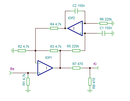 A leválasztás alatt IOP1-et értem. Az is kényes a kimeneti terhelésre. Az eredeti kapcsolásban OPA2604-es van.